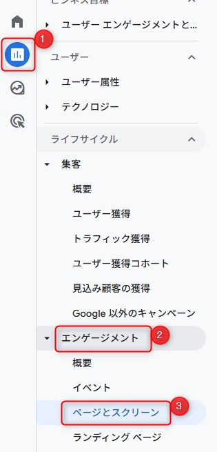 - 見る場所: レポート > エンゲージメント > ページとスクリーン