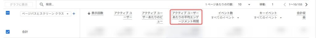 「アクティブユーザーあたりの平均エンゲージメント時間」に注目してください。