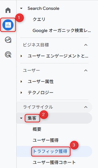 GA4で「どこから来たか」を知るためのレポートはいくつかありますが、日々の分析で最も使うのは以下のレポートです。
