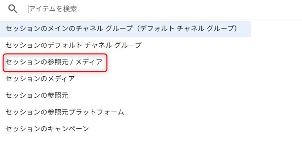 2. リストから「セッションの参照元 / メディア」を選択します。