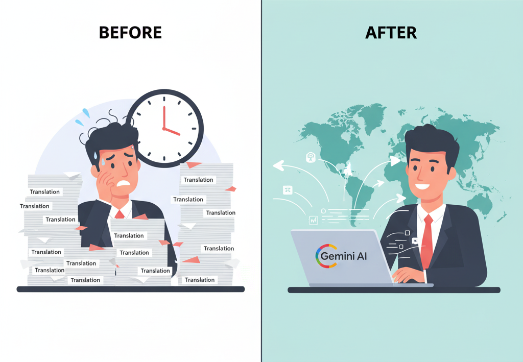 海外取引における翻訳の課題は、「時間」と「コスト」の両面から営業活動を圧迫します。しかし、Geminiの登場により、その常識は変わりました。