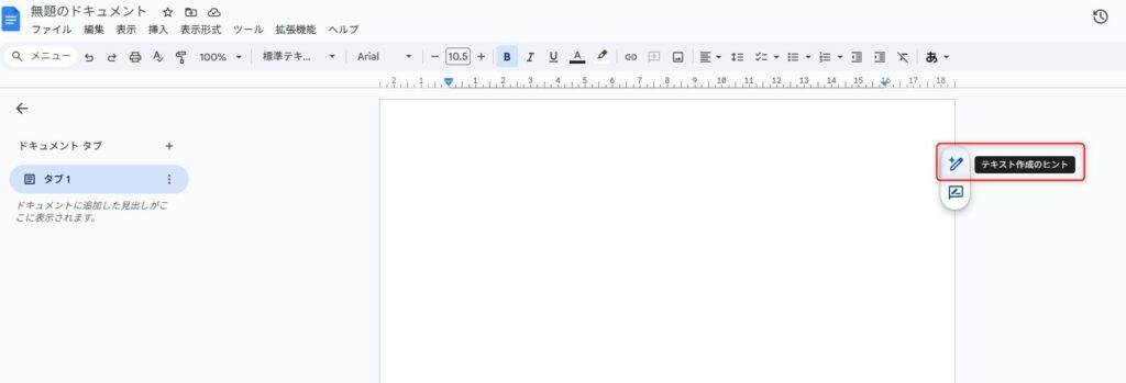 ステップ: Google Docsを開き、「文章の作成をサポート」機能使用します。