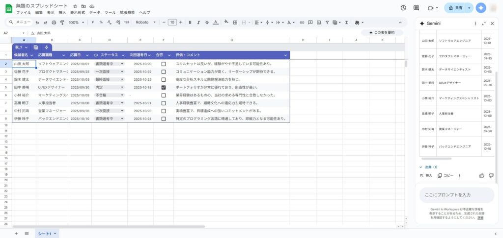 実践術2:Gemini in Sheetsで「応募者管理表」を自動生成&運用