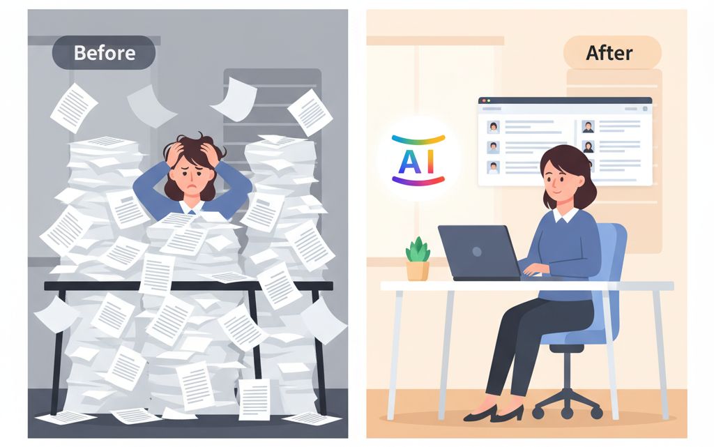 採用活動の遅れは、優秀な人材を競合に奪われる大きな原因となります。しかし、人手が限られる中で、この状況を打開するのは容易ではありません。もし、これらの課題を解決してくれる「賢いアシスタント」がいたら…?
