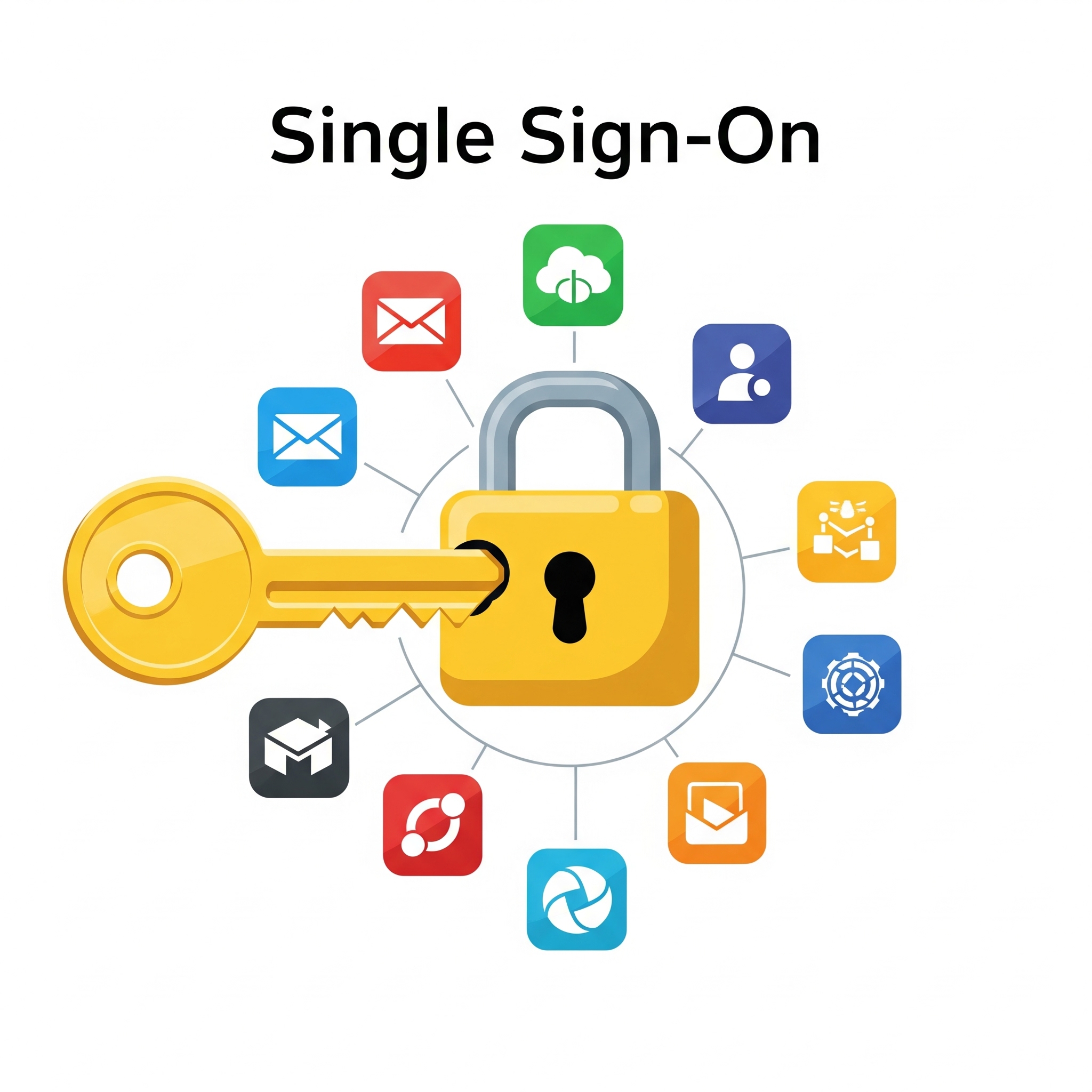 SSO(エスエスオー)とは、「Single Sign-On(シングル サインオン)」の略で、Google Workspaceの文脈において、ユーザーが一度認証(ログイン)するだけで、複数の異なるアプリケーションやサービスにアクセスできるようになる仕組みのことです。